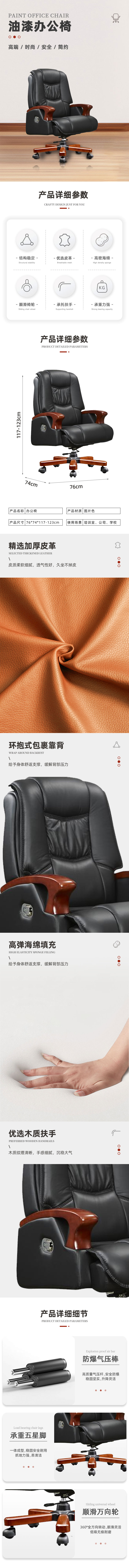 初嘉CJ-ZCY-007豪华商务办公椅老板椅总裁椅可躺转椅电脑椅家用牛皮椅黑色C款