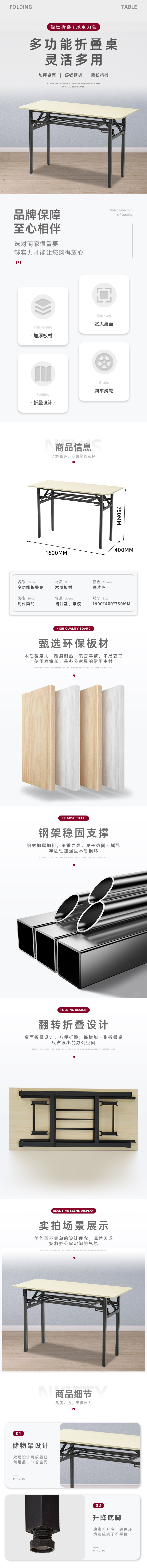 初嘉CJ-ZDZ-027培训学习桌电脑桌折叠长条桌家用学生书桌办公桌会议桌1.6米