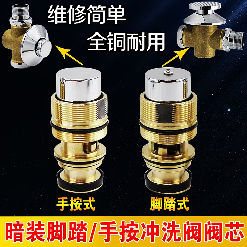 逸达尚 88508 1寸DN25 脚踏冲洗阀阀芯 全铜暗装大便蹲便器冲水阀配件 脚踏式