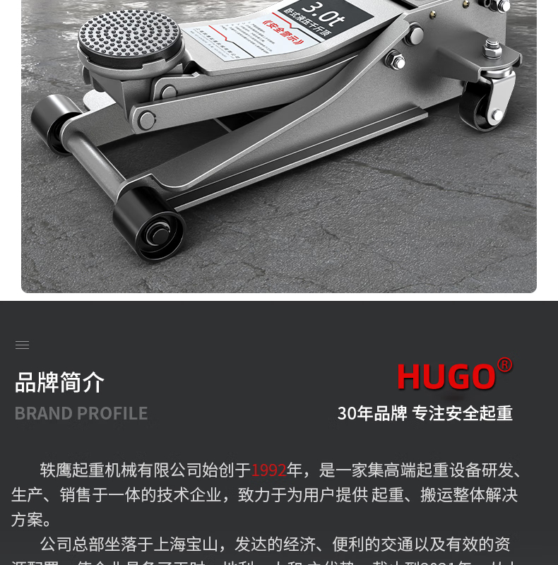HUGO卧式液压千斤顶汽车用 [汽修专用]5吨加厚双泵超低位