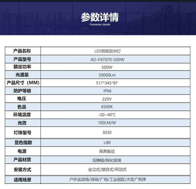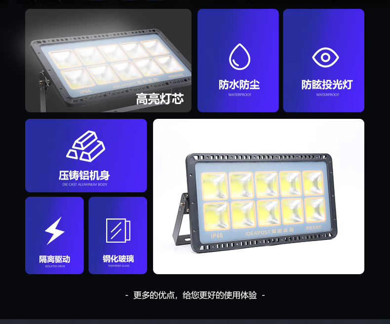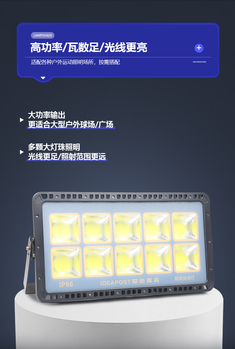 爱迪普森(IDEAPOST)AD-FX7070-500W LED投光灯户外泛光灯 防眩目室外球场高杆灯