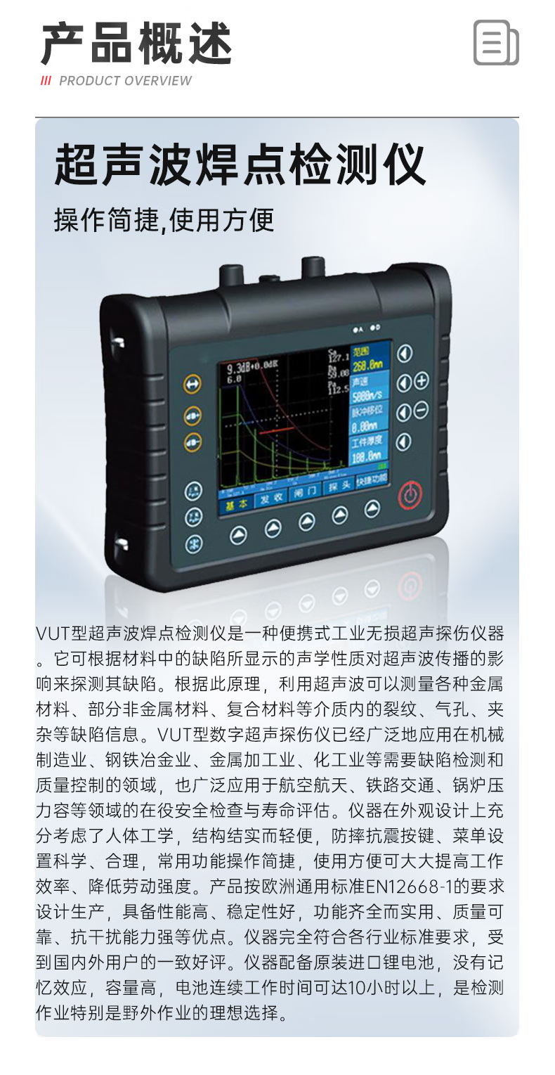 高灵敏度和高精度:采用400MHz的CPU主频,30组快速探伤通道,确保缺陷捕捉的灵敏性和准确性。