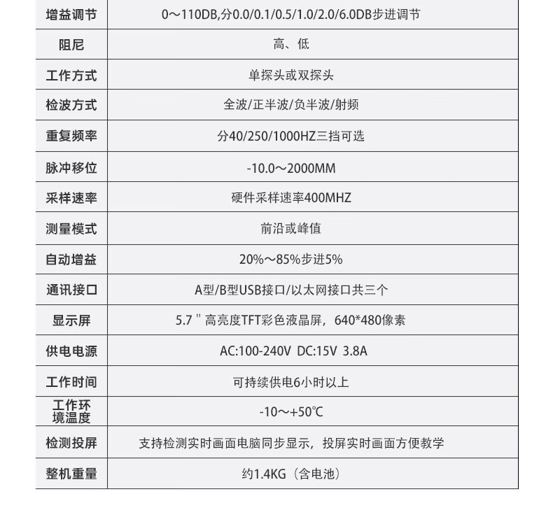 高低分频设计:宽频低噪声放大电路,支持低频和高频窄脉冲探头探伤,适应多种检测需求。
