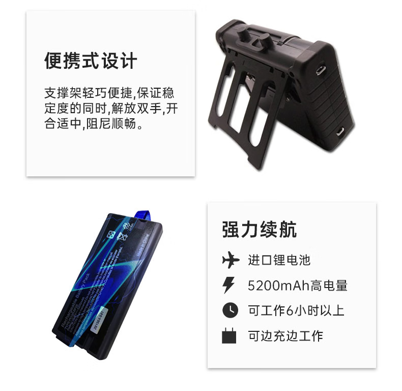 强力续航能力:配备5200mAh进口锂电池,可连续工作6小时以上,支持边充边工作。
