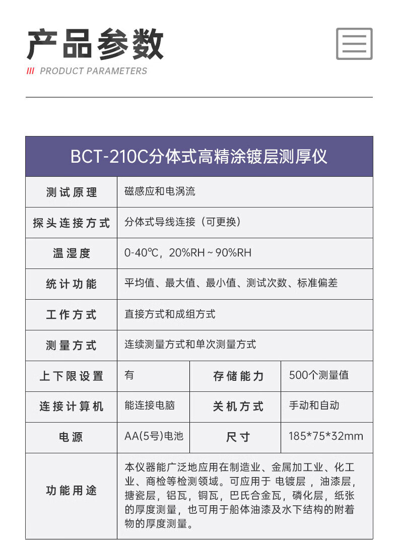 珀瑞克BCT-210C涂层测厚仪铝合金阳极氧化膜测厚仪非磁性测厚仪