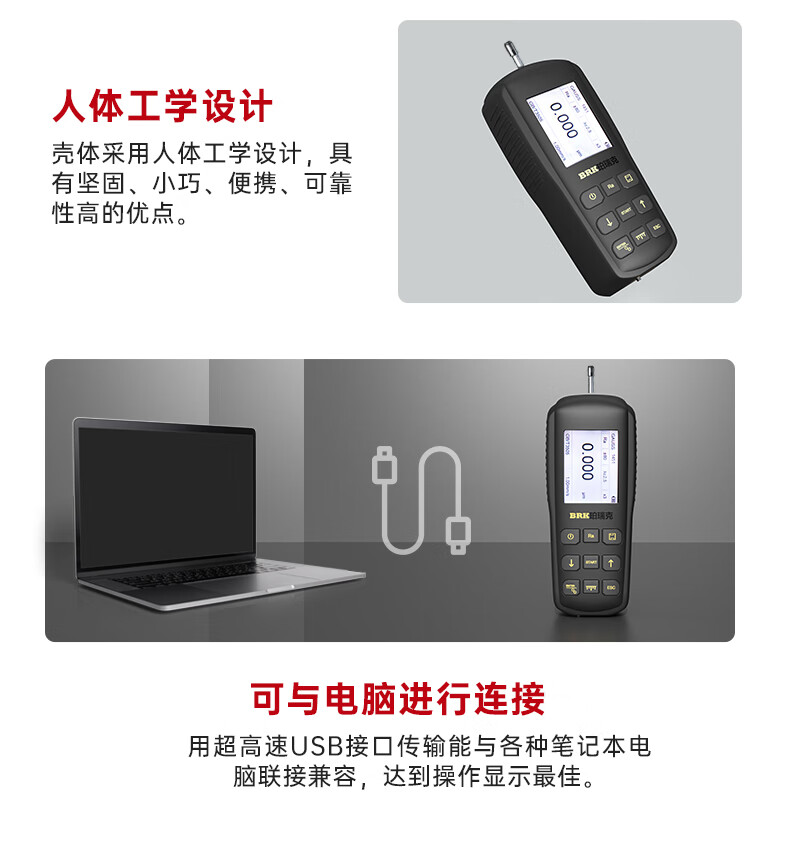 机电一体化设计,便携式高精度,支持平面、外圆面、锥面、内孔、沟槽、曲面等多种表面粗糙度测量