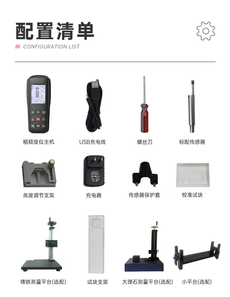 配备校准块、高度调节支架等配件,支持校准和稳定测量