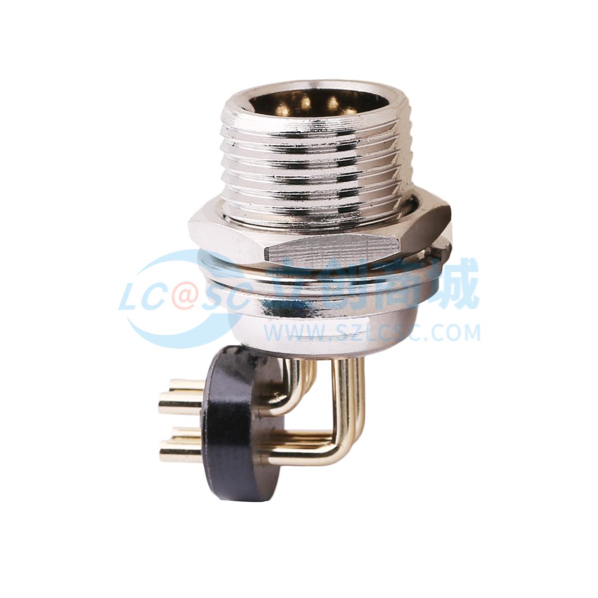 XKB Connection(中国星坤)航 空插头GX12-4Pin固定式插座90°弯针,面板安装插座,航 空插头,PCB线路板插座EC.GX12.P04.CAV