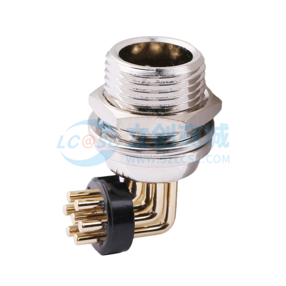 XKB Connection(中国星坤)航 空插头GX12-7Pin固定式插座90°弯针,面板安装插座,航 空插头,PCB线路板插座EC.GX12.P07.CAV