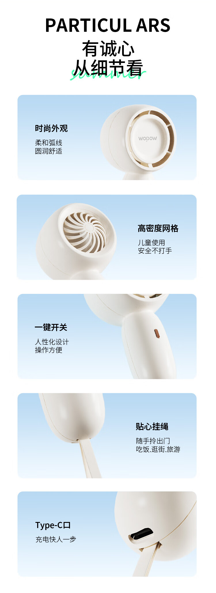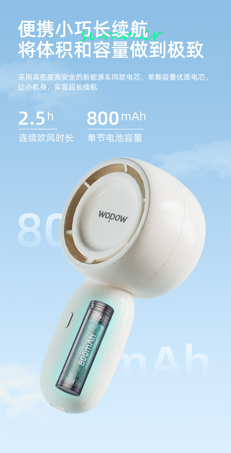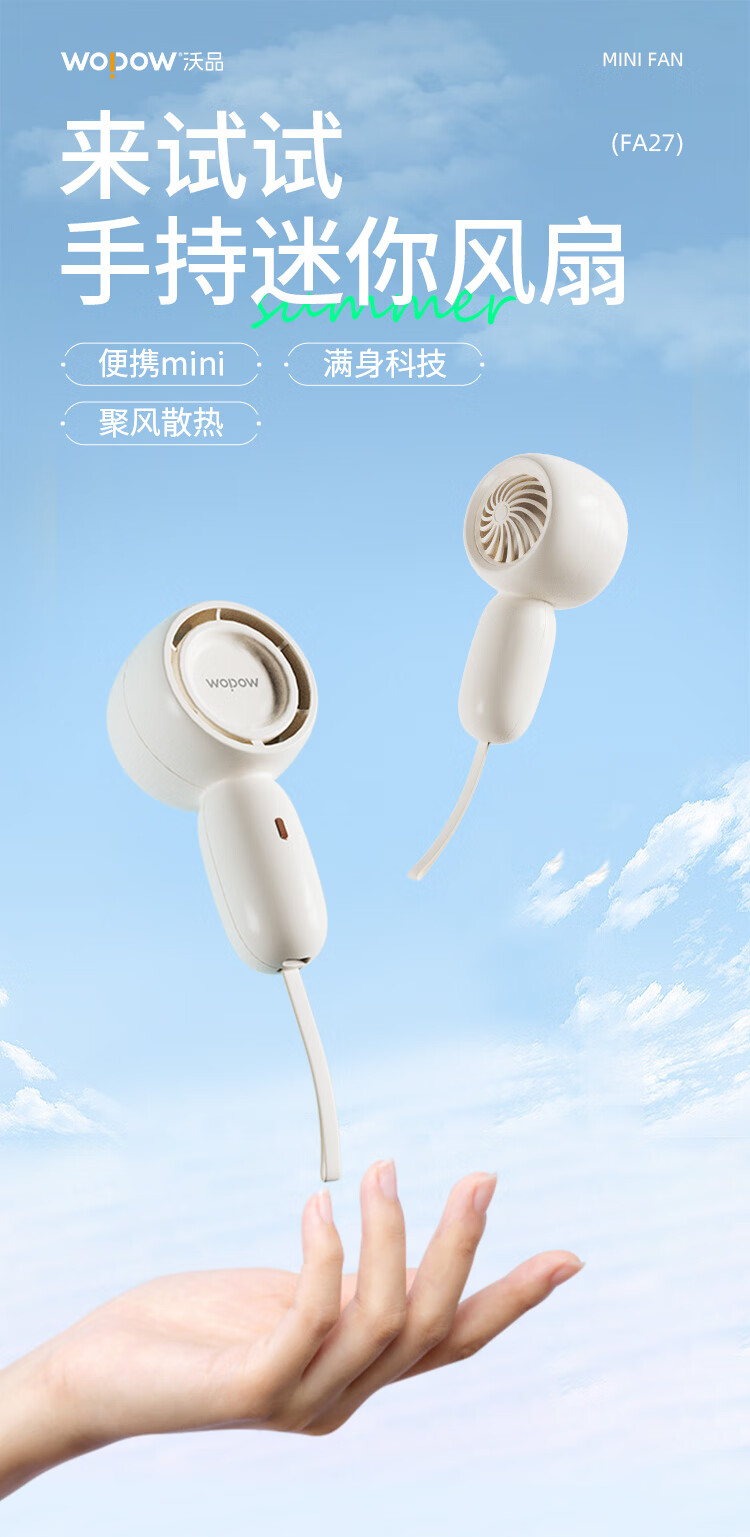 沃品(WOPOW)FA27 手持风扇 便携式迷你小风扇 type-c充电式长续航轻音低噪小电扇