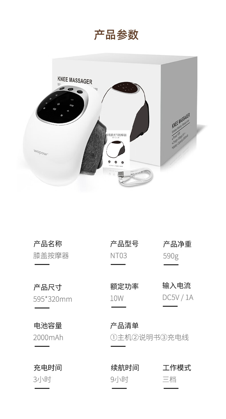 沃品(WOPOW)膝盖按摩器保暖热敷理疗仪护膝缓解关节疼痛成人腿疼膝盖痛按摩仪小腿按摩专用多档位穴位按压NT03