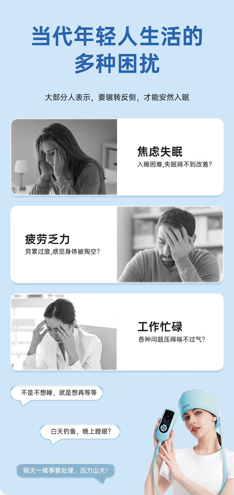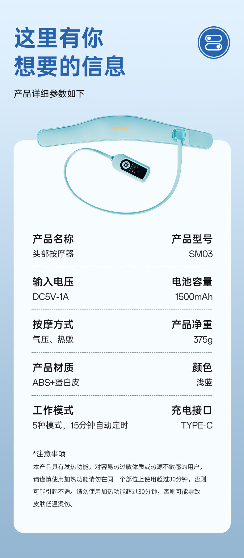 沃品(WOPOW)头部按摩器小巧便携带 头疼痛热敷睡眠仪头皮按摩仪 生日礼物男女教师节礼物实用 SM03