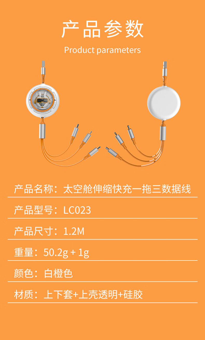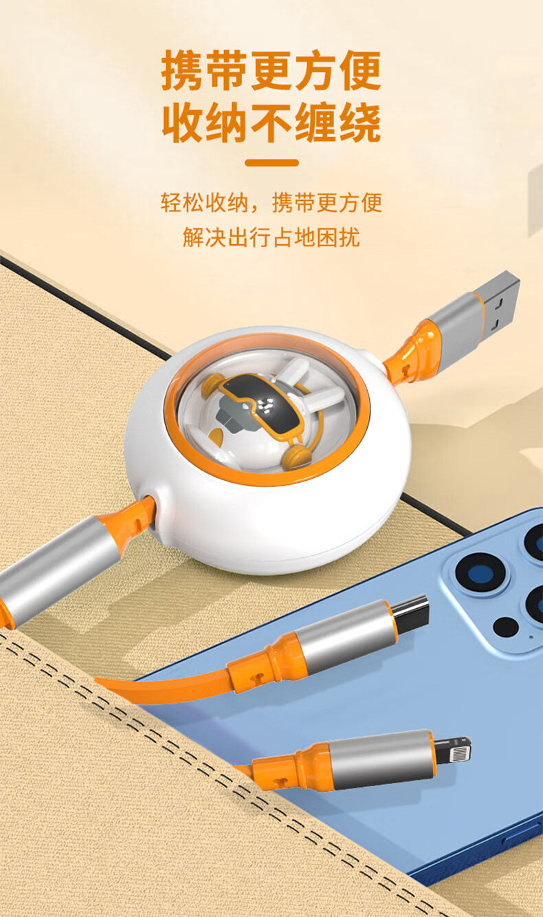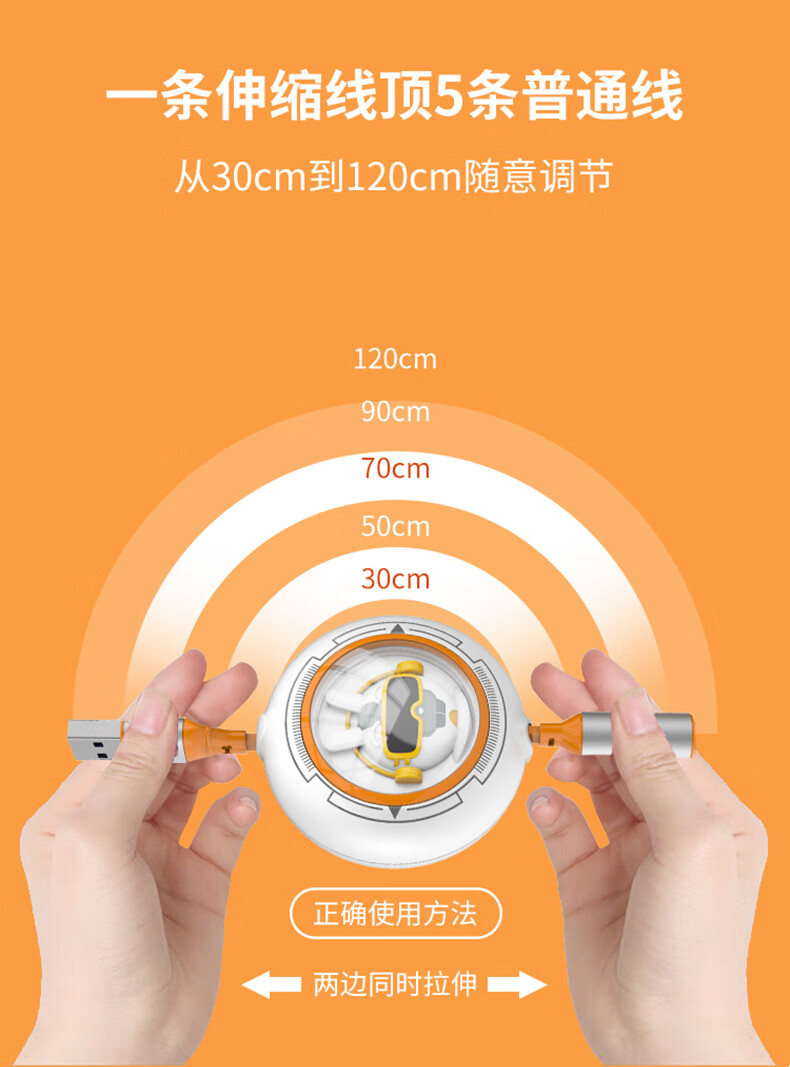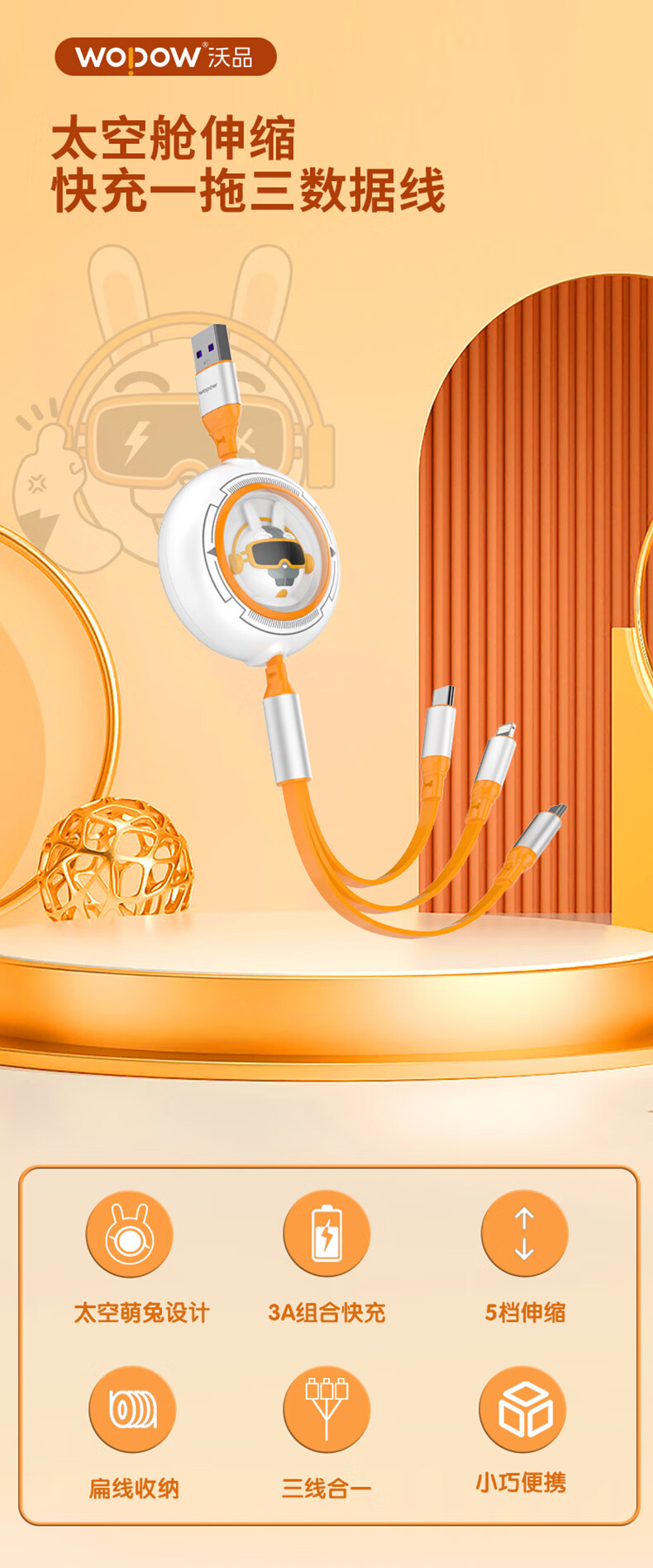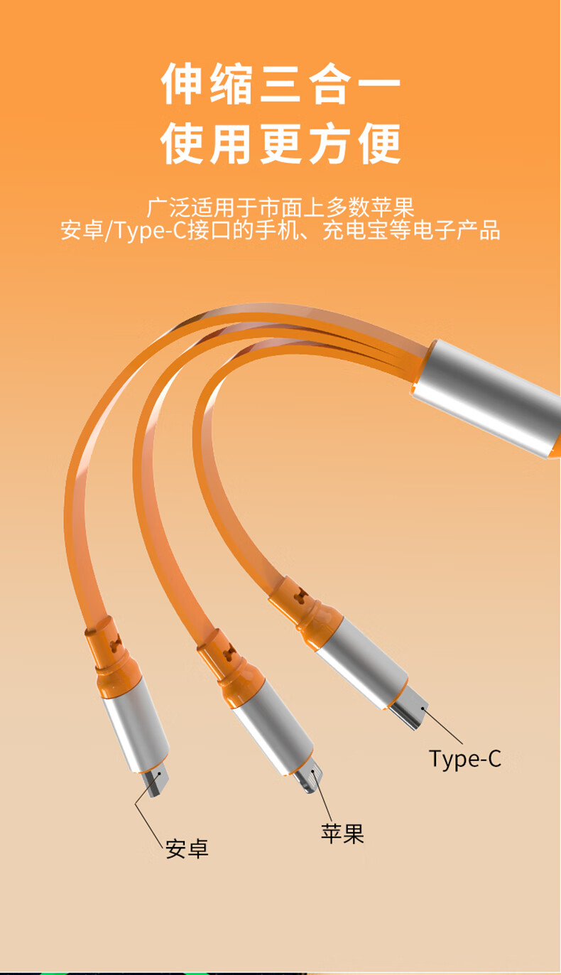 沃品(WOPOW)一拖三伸缩充电线快充线通用线便携车载 LC011-P 紫色