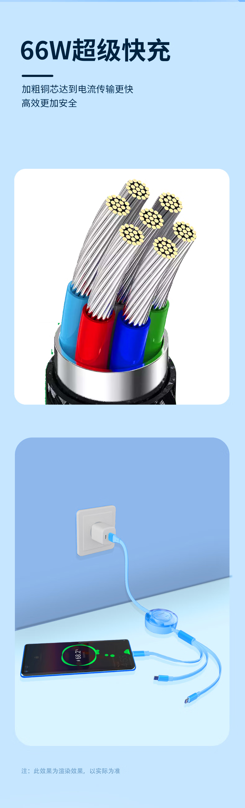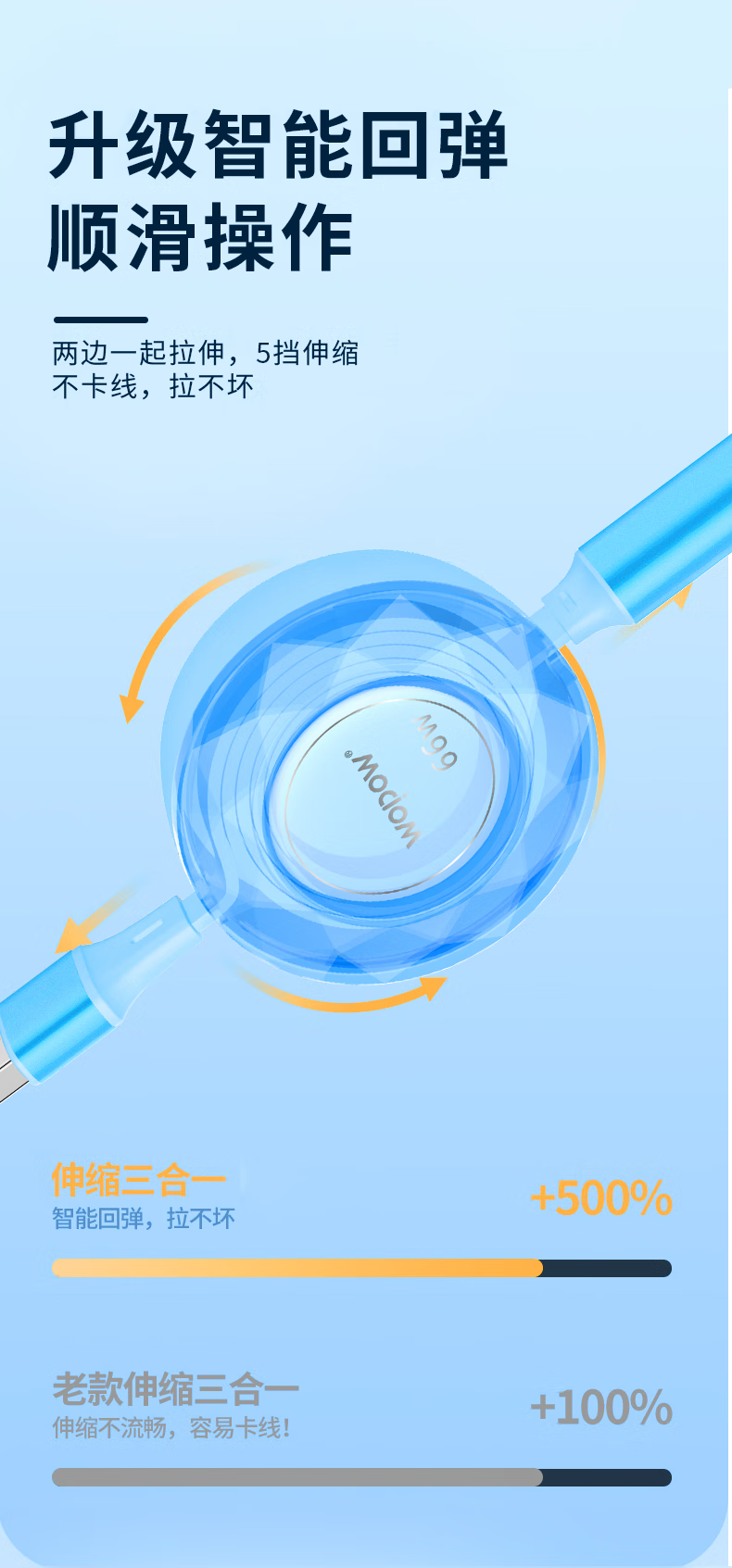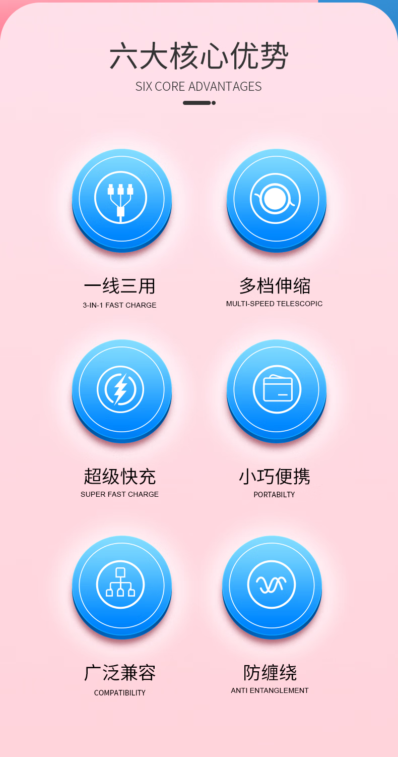沃品(WOPOW) LC012-P超级快充双向伸缩一拖三数据线可调节拉伸快充线三合一便携车载数据线 粉色 1.2米