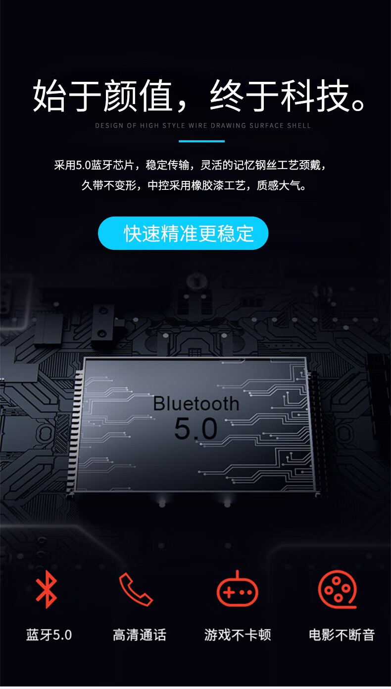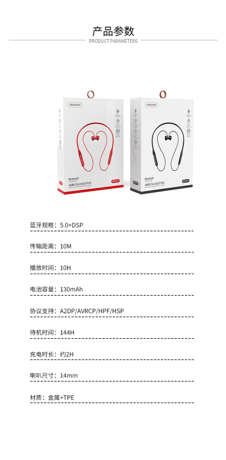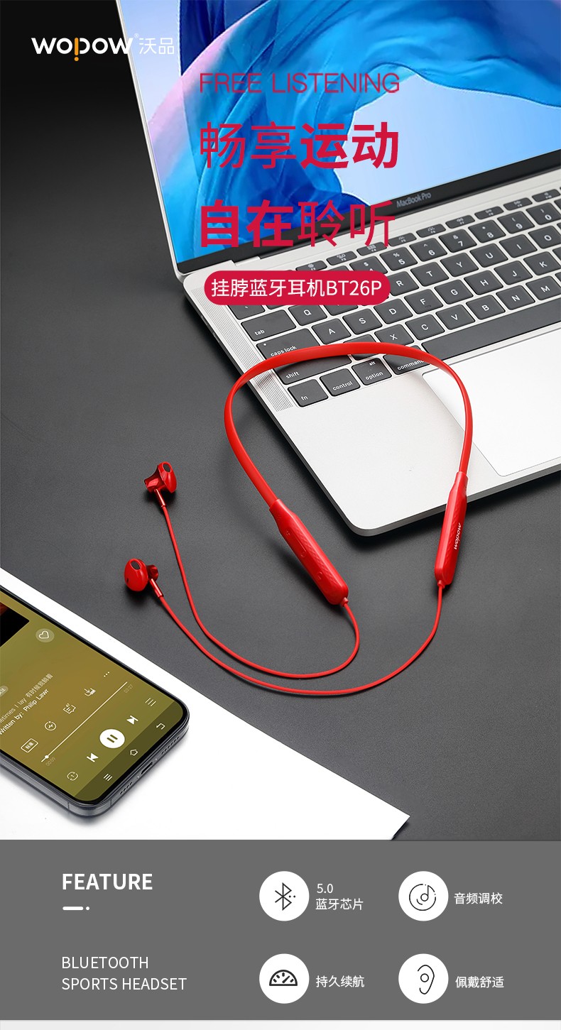 沃品(WOPOW)BT26P-B 蓝牙运动耳机长续航挂脖耳机适用于安卓苹果 黑色