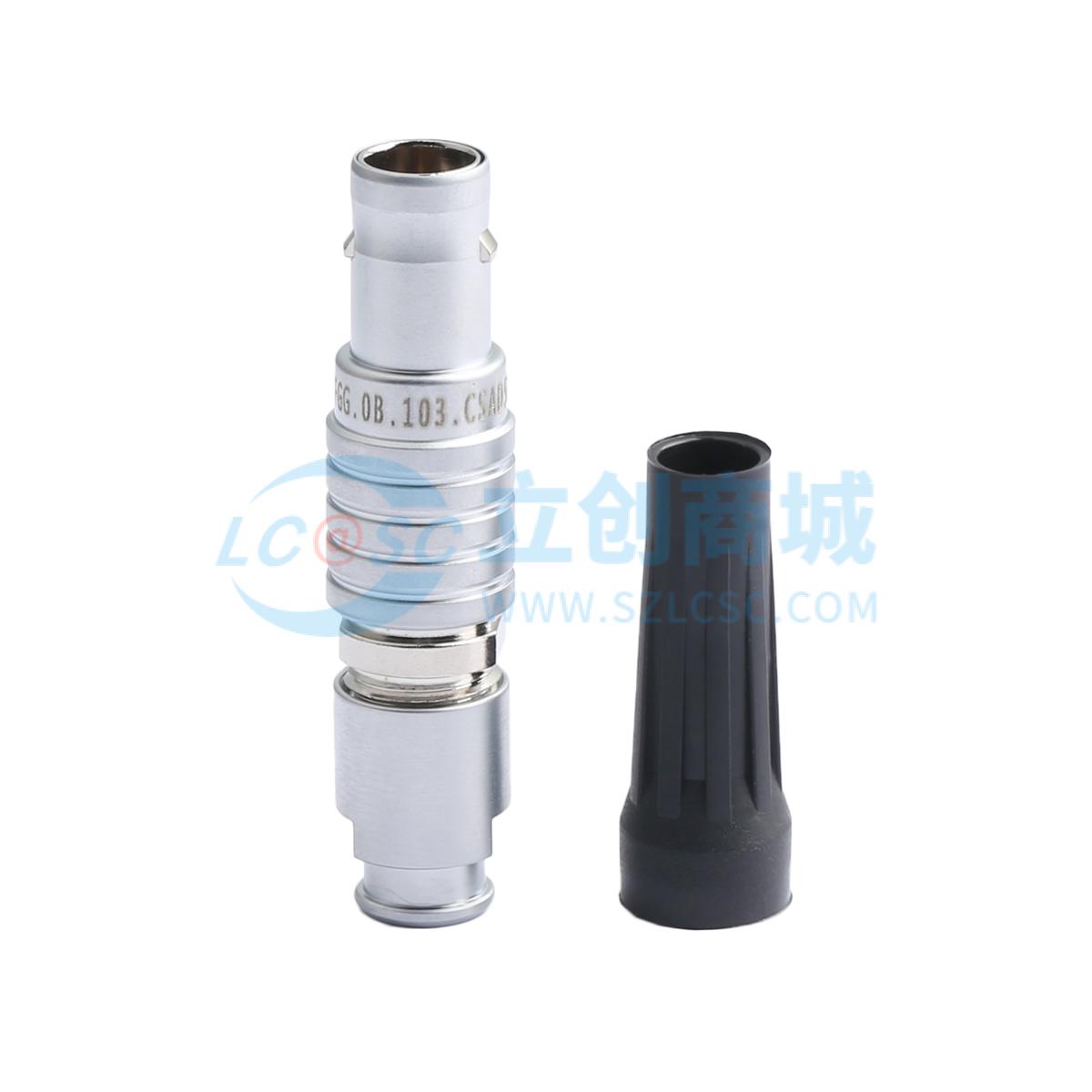 LICQ M9圆形推拉自锁连接器直式插头3芯52线夹带护套 BR.FGG.0B.103.CSAD52Z