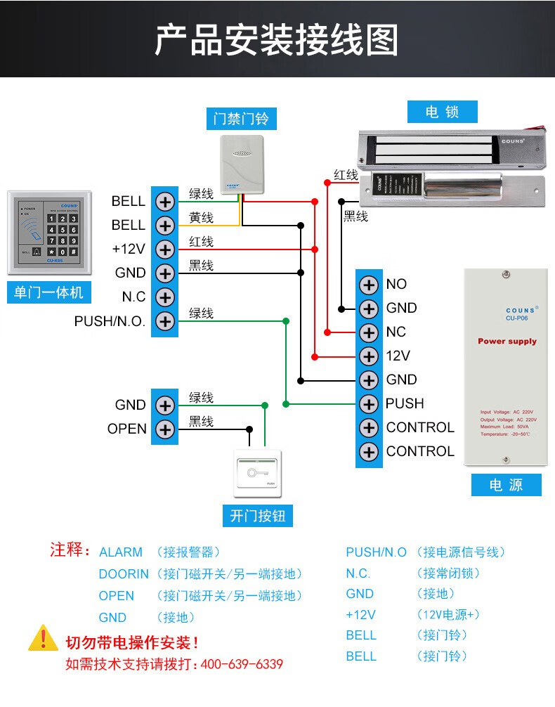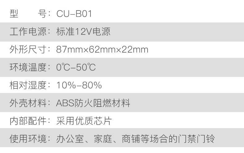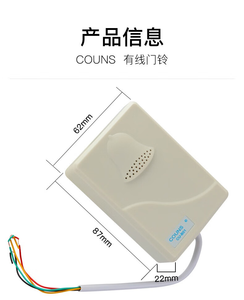 高优(COUNS)门禁有线门铃 12V接电电铃无需电池清脆叮咚门铃家用电子门铃CU-B01