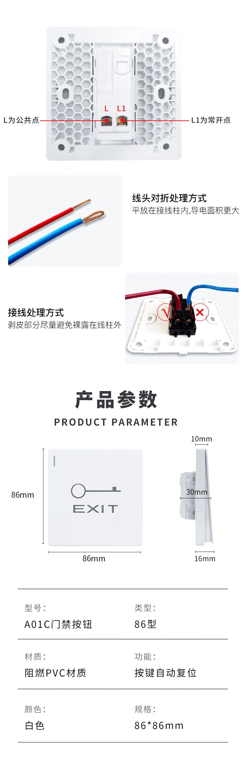 高优(COUNS)门禁开关出门按钮86型触摸按键开关室内开门按钮红外感应面板CU-A02B[金属防水/暗装不带底盒]