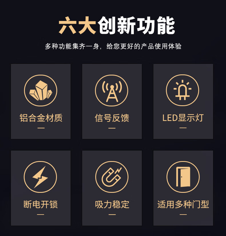 磁力锁工作时会产生较强的磁场,请勿将磁敏感的元件靠近锁体,避免造成干扰或损坏。