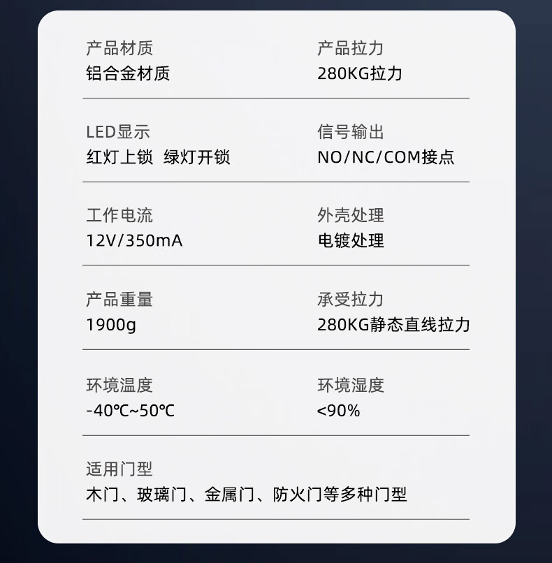 高优(COUNS)磁力锁单门280KG玻璃门防火门铁门12V电吸锁防水门禁电控锁 双门-S282CA(信号反馈+防水)