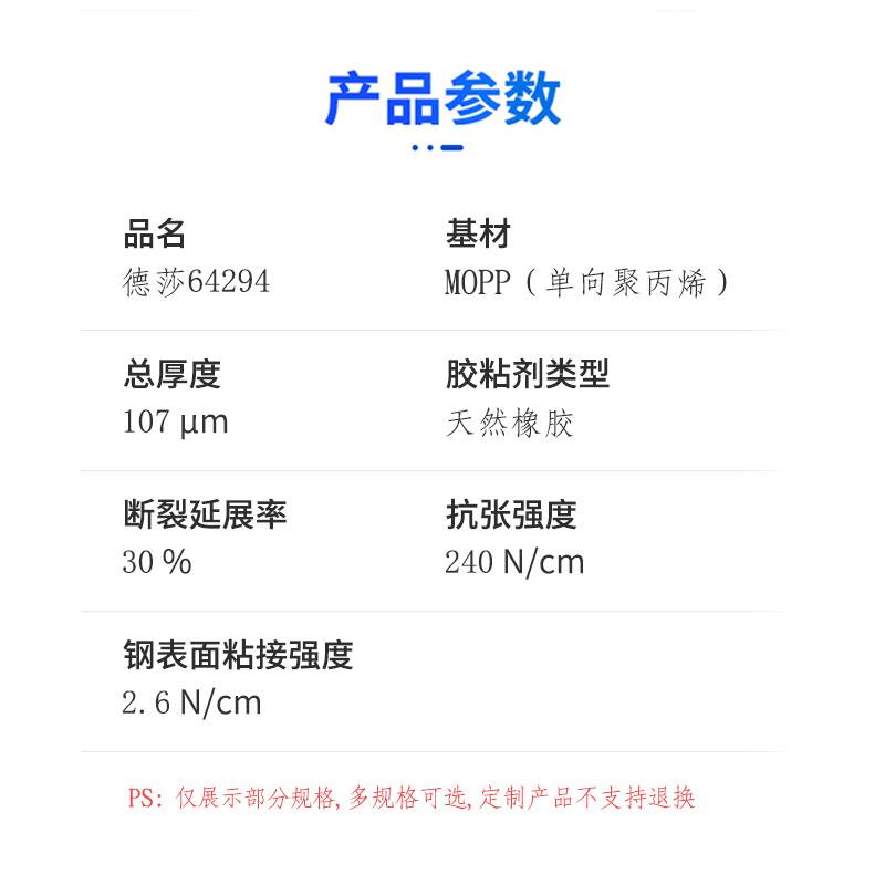 tesa(德莎)低温(-10°C)无残留不分层冷藏封装定位固定捆扎胶带蓝色64294B-25mm*50m