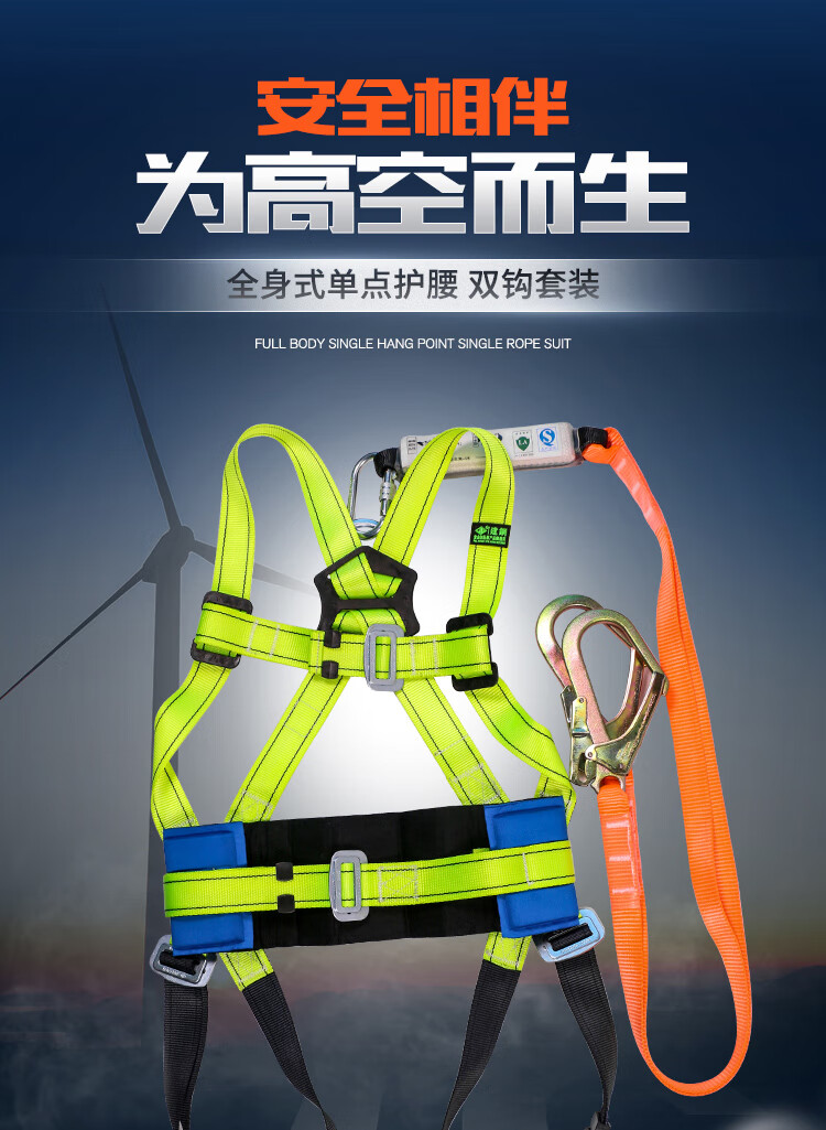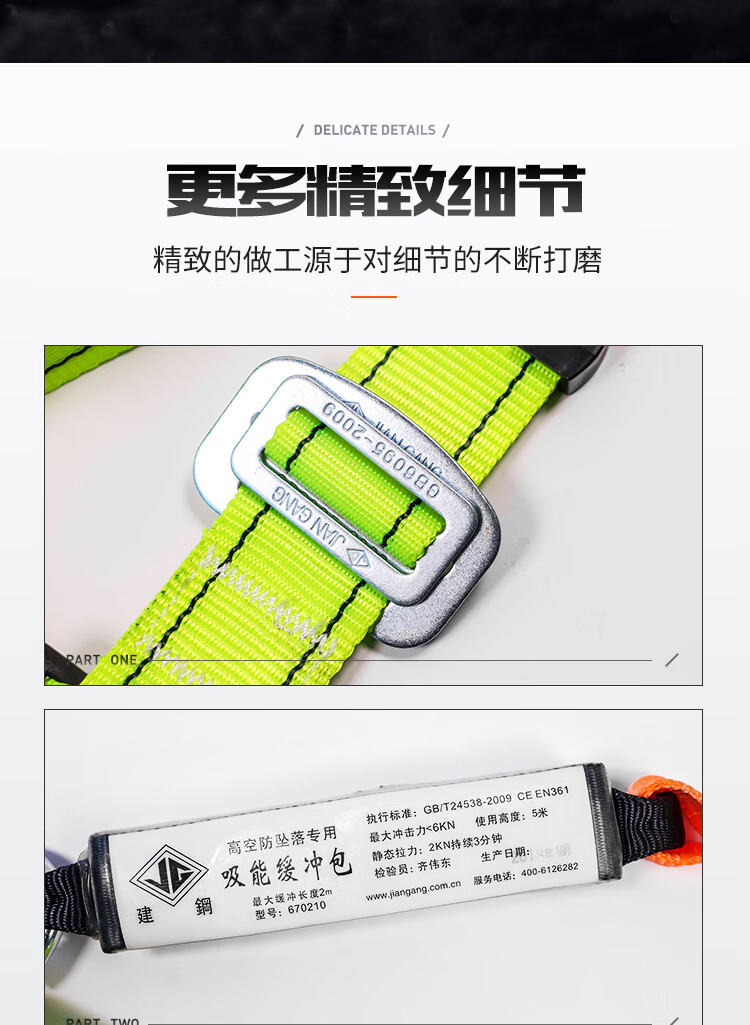 建钢 五点式安全带 680811 国标 全身式 双钩 防坠 含尼龙缓冲绳
