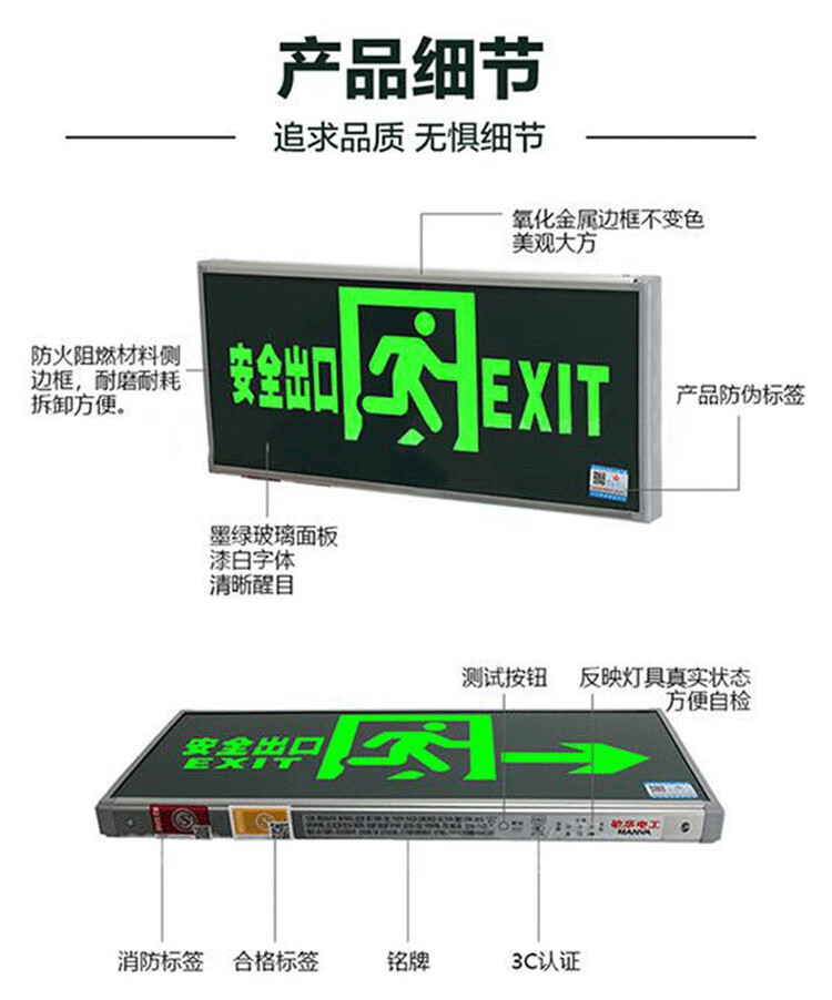 敏华电工 新国标消防应急灯3C认证单面正向无箭头安全出口标志灯指示牌带电紧急疏散指示灯