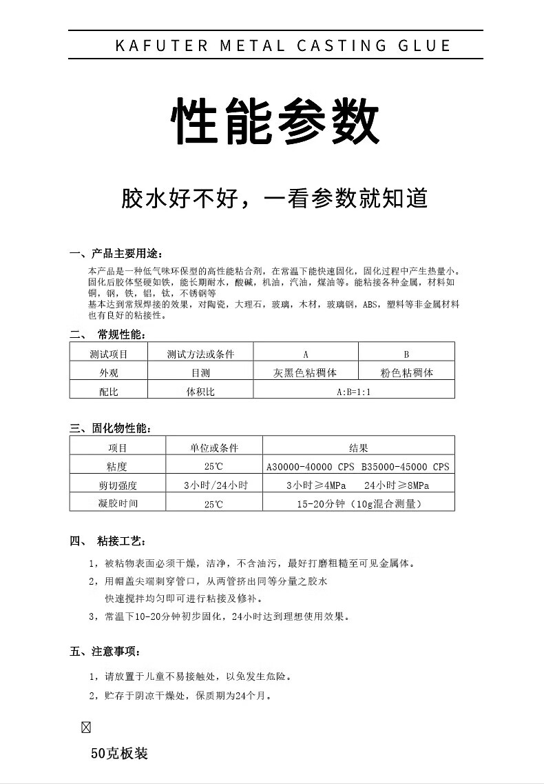 卡夫特(kafuter) 特种金属焊接胶 K-964 强力结构胶AB胶 汽车胶粘金属铁铝合金铜专用电焊修补