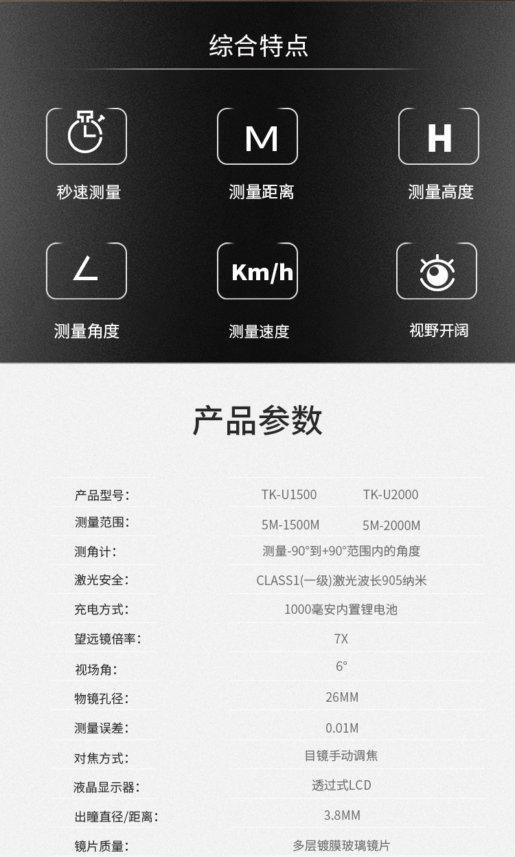 艾立仕(Elvis)TK-U系列高精度蓝牙传输测距仪多功能激光测角测距仪 TK-U2000