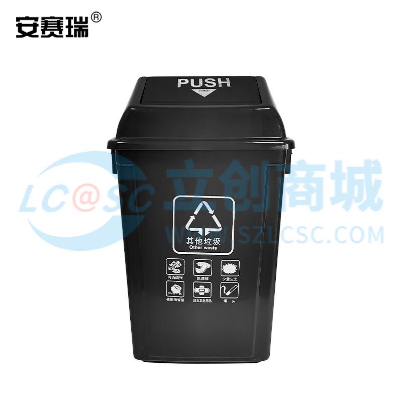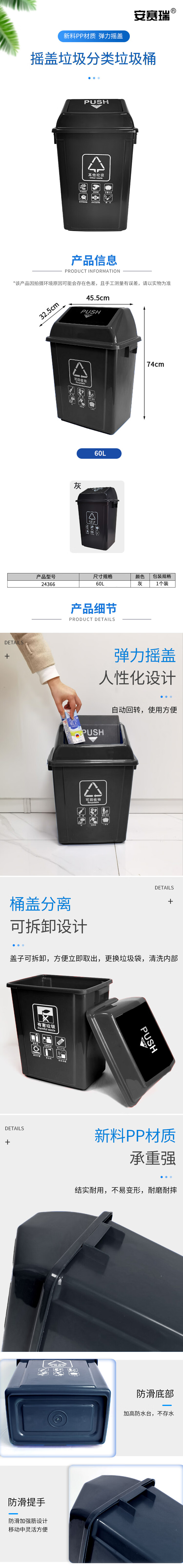安赛瑞 摇盖垃圾分类垃圾桶 商用干湿分类垃圾桶 塑料摇盖式垃圾桶 环卫户外果皮垃圾桶 60L 灰色 24366