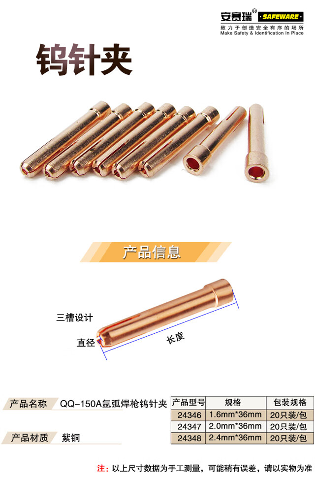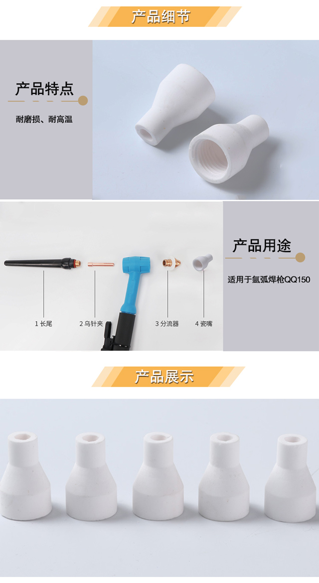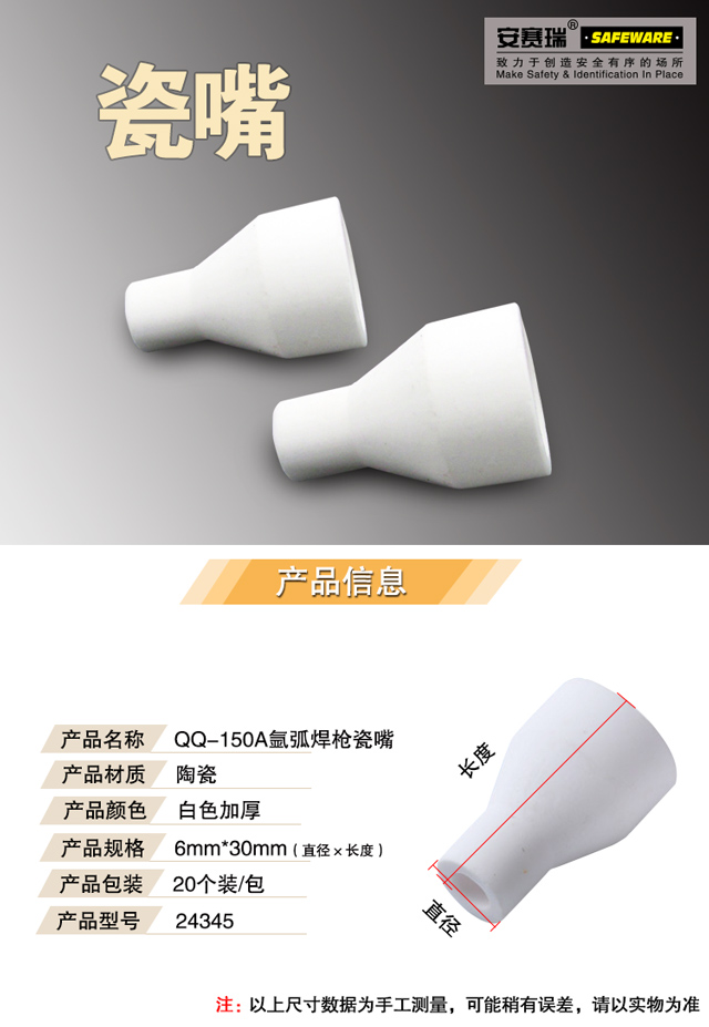 安赛瑞 QQ-150A氩弧焊枪瓷嘴 白色加厚氩弧焊瓷咀 氩弧焊枪配件陶瓷嘴 6×30mm(20只装)24345