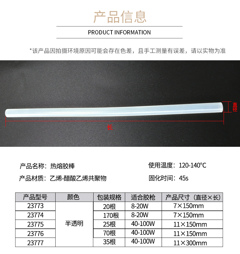 安赛瑞 热熔胶棒 高粘性手工制作胶条 胶枪通用 20根装7×150mm 23773