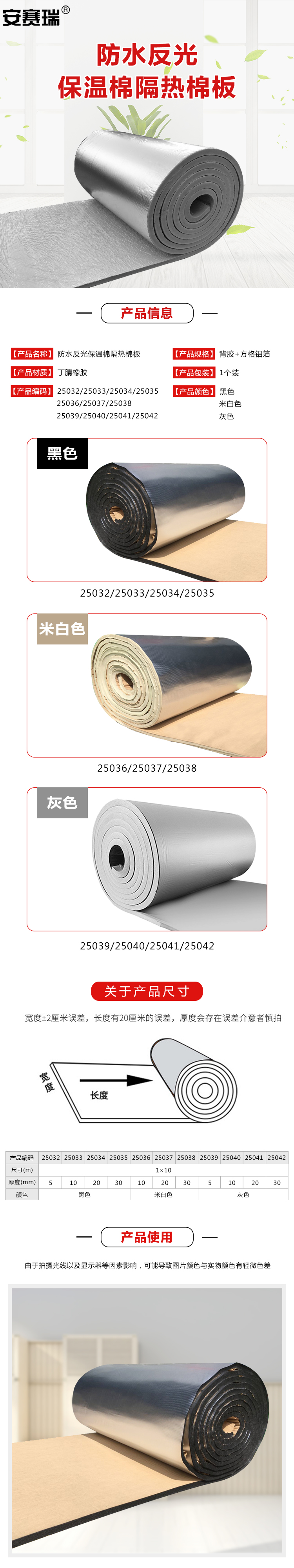 安赛瑞隔热棉板采用丁腈橡胶材质,具有卓越的防水和隔热性能。