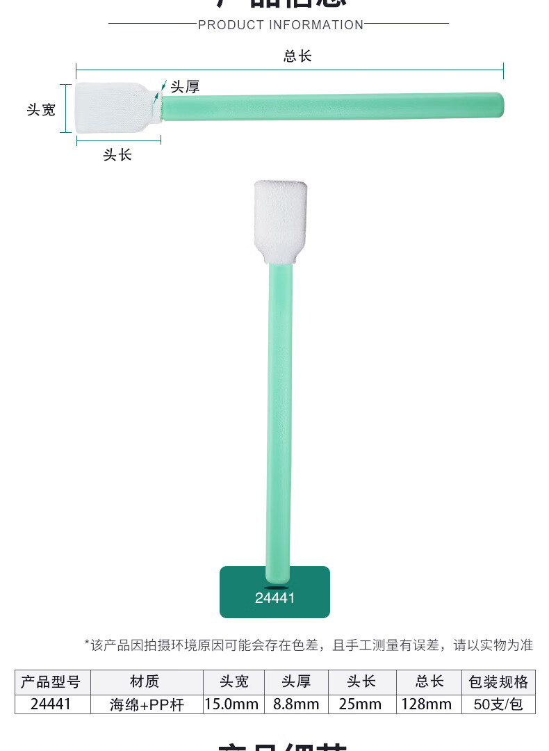 安赛瑞 无尘净化海绵棉签(50支/包)方头粘尘棒 工业擦拭棒 塑杆清洁海绵棒SW-707 24441