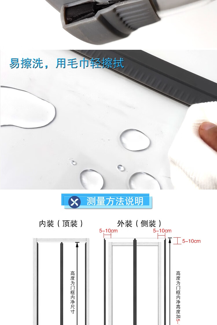 **安全提示**:安装时注意用电安全,避免划伤或损坏门帘,如有破损应及时更换。