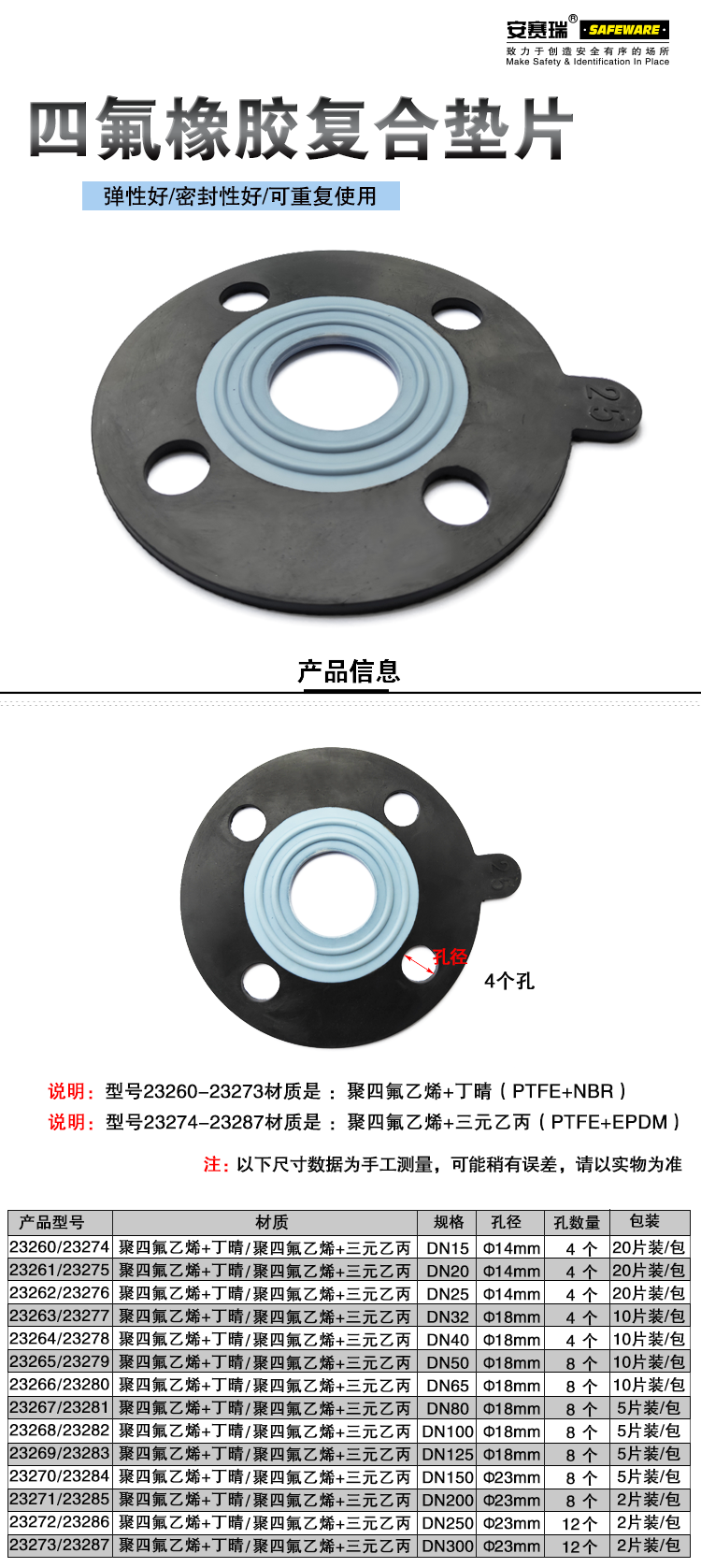 5 本型号为PTFE+NBR材质,需根据实际介质选择使用
