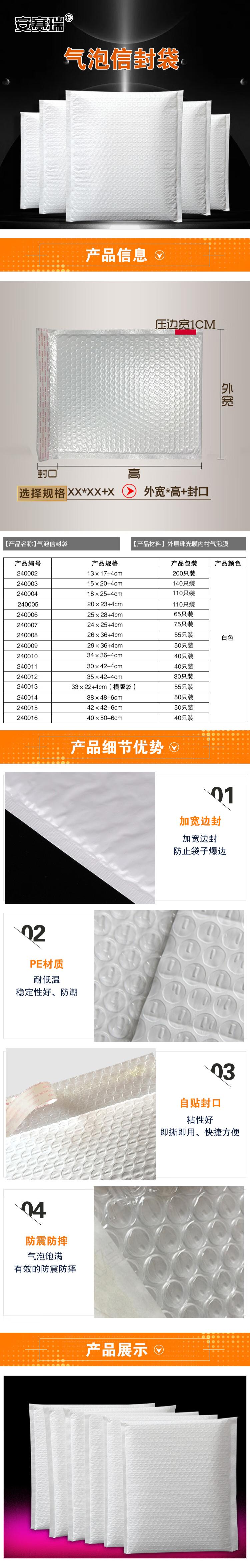 安赛瑞 珠光膜气泡袋 气泡信封袋加厚自粘快递包装袋 防水防震物流泡沫袋 20×23+4cm(110个装)白色 240005
