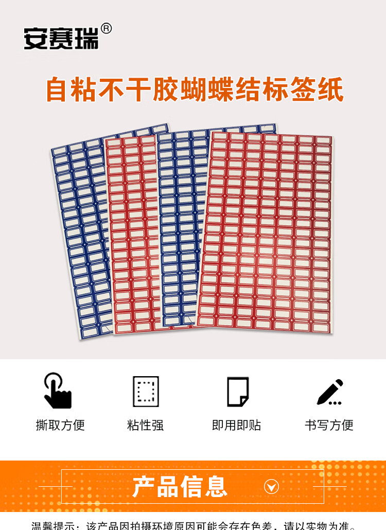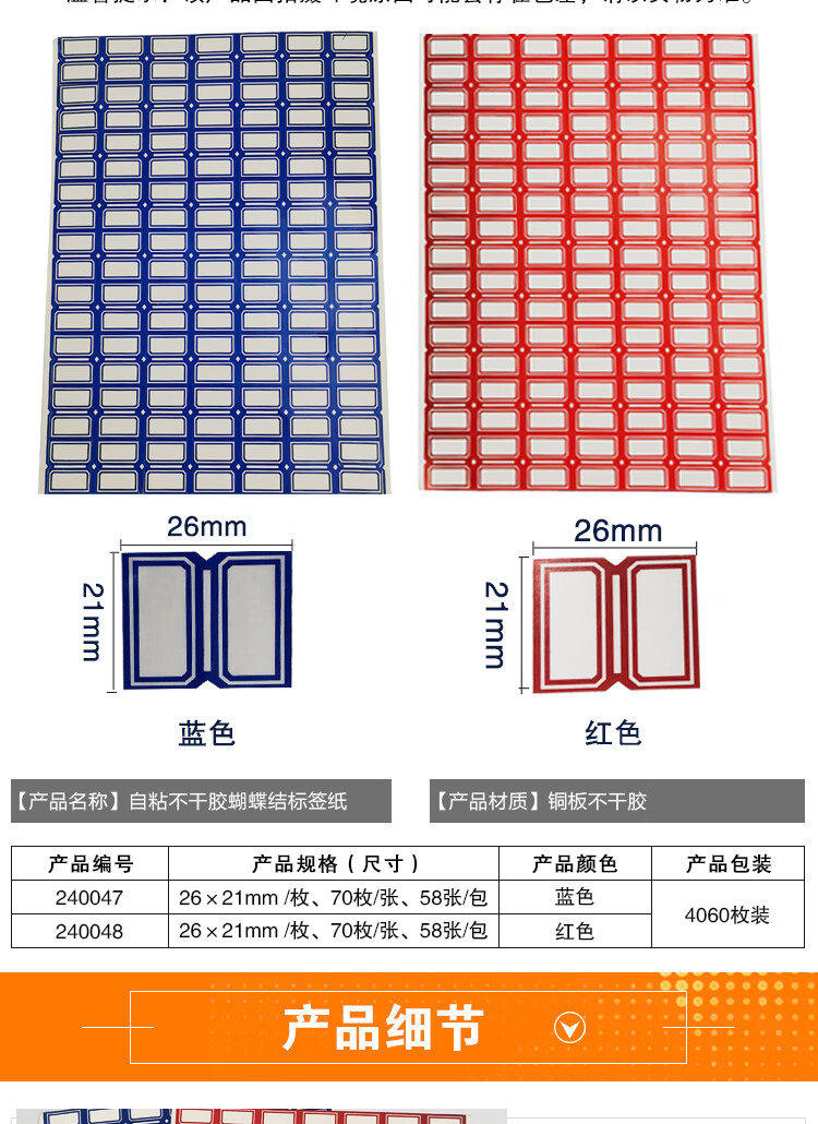 蝴蝶结造型标签,单枚尺寸为26×21mm,每包含58张,每张70枚,总计4060枚,数量充足