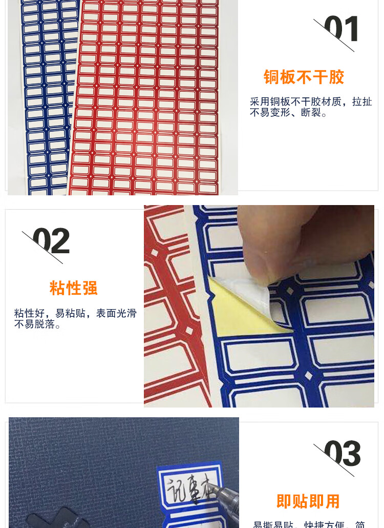 采用铜板不干胶材质,拉扯不易变形、断裂,耐用性强