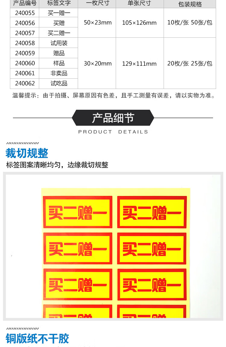 零售门店:在商品包装或货架上粘贴,明确赠品身份,避免混淆