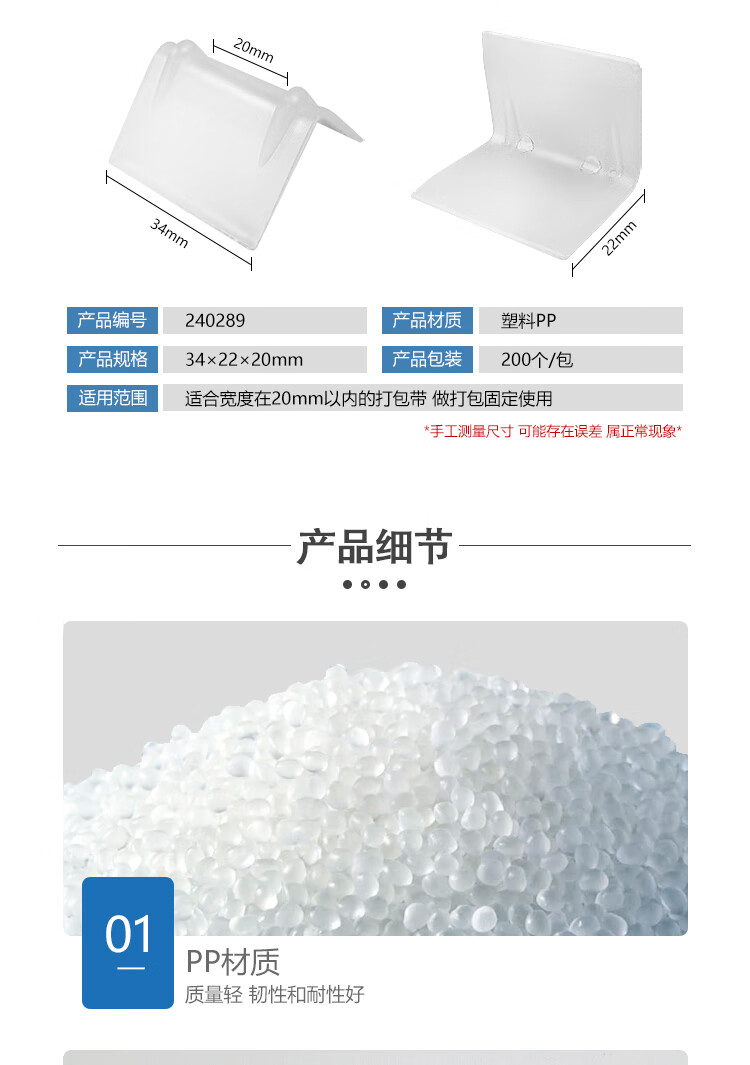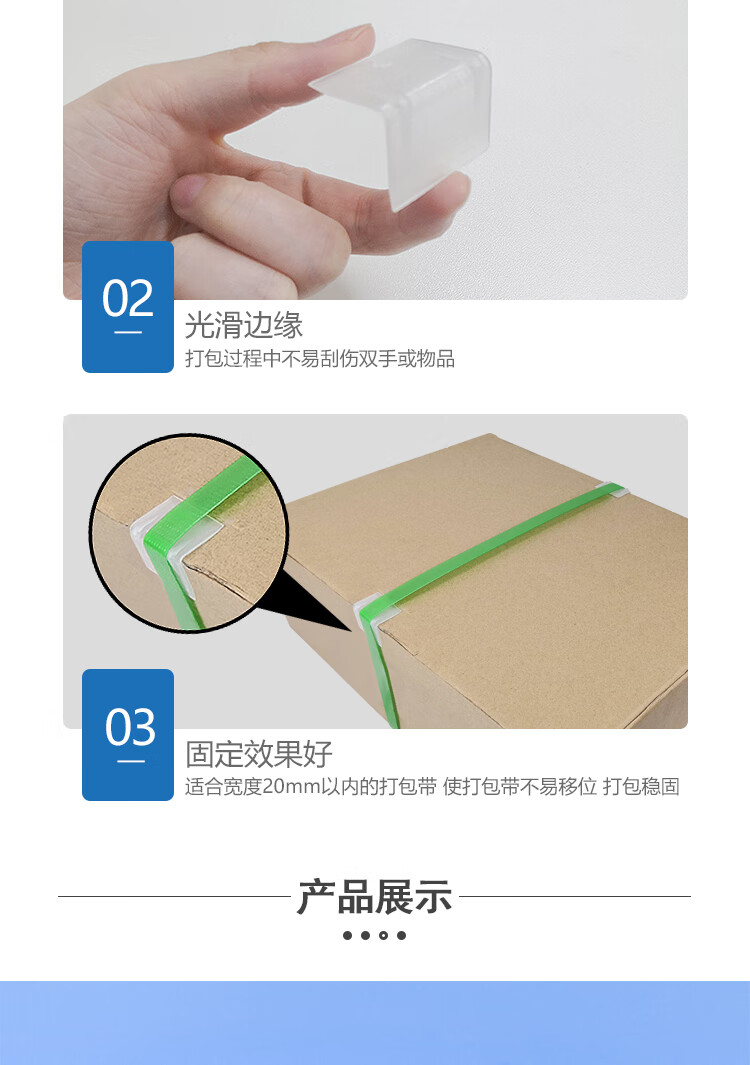 固定效果稳定,适配宽度20mm以内的打包带,有效防止打包带移位,提升打包牢固度