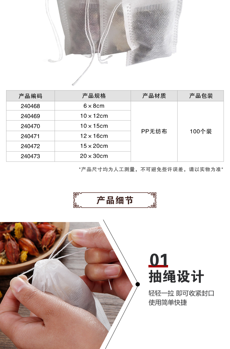 5 本产品仅包含无纺布过滤袋,不包含图片中展示的药材、茶具等其他物品