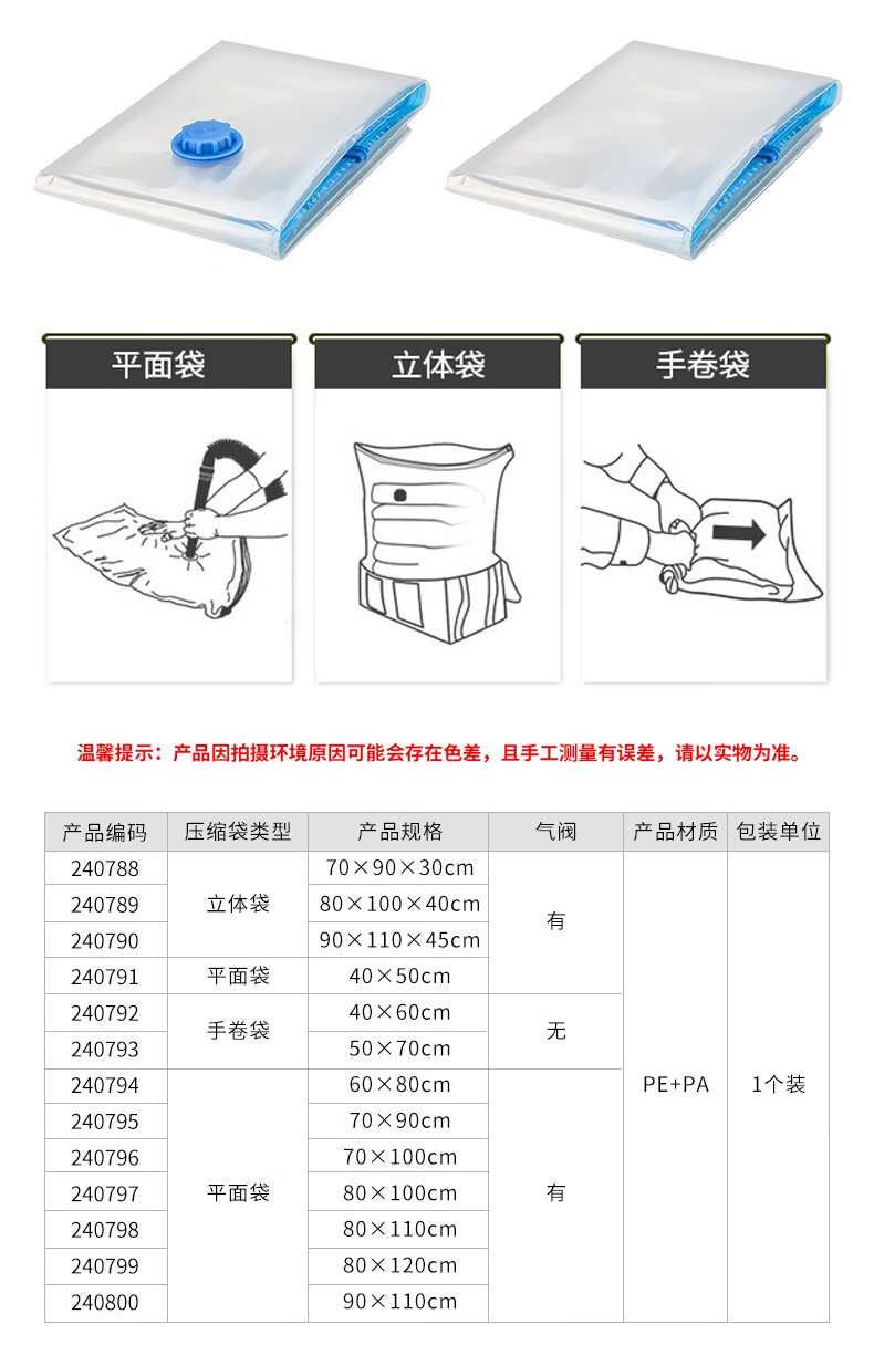真空密封效果可节省存储空间,同时保护衣物免受潮湿、灰尘侵扰