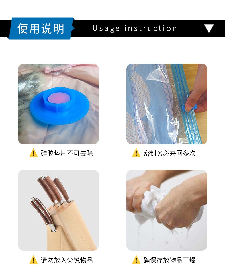 请勿放入尖锐物品(如刀具、针等),避免刺破袋体