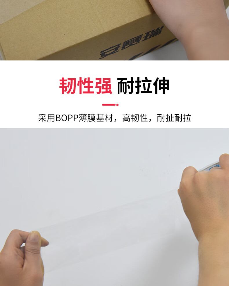 采用BOPP薄膜基材,韧性强耐拉伸,不易断裂