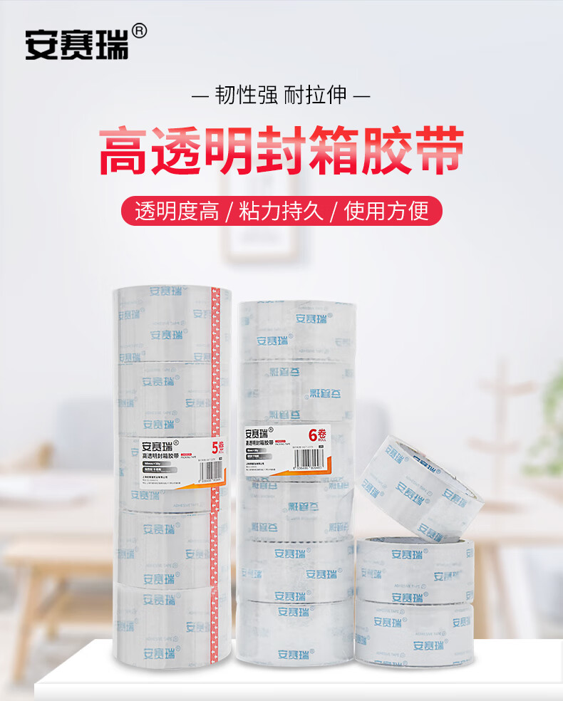 安赛瑞 透明胶带 高透封箱打包胶带 宽48mm×50y×48um 1卷装 240815