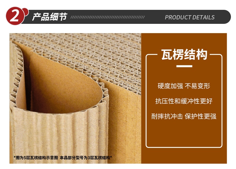 采用5层加硬瓦楞纸板结构,硬度加强不易变形,抗压性和缓冲性优异,耐摔抗冲击,能有效保护内部物品