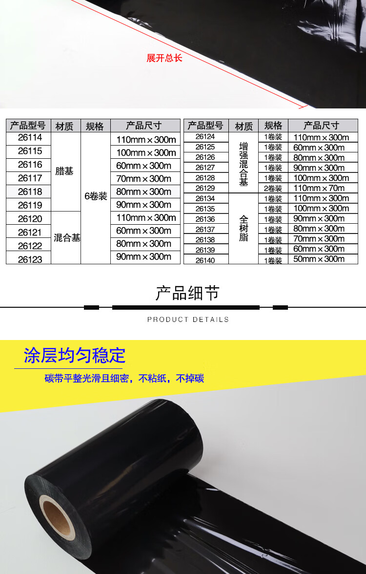 材质为增强混合基,兼顾耐用性与打印效果,适配多种标签纸材质