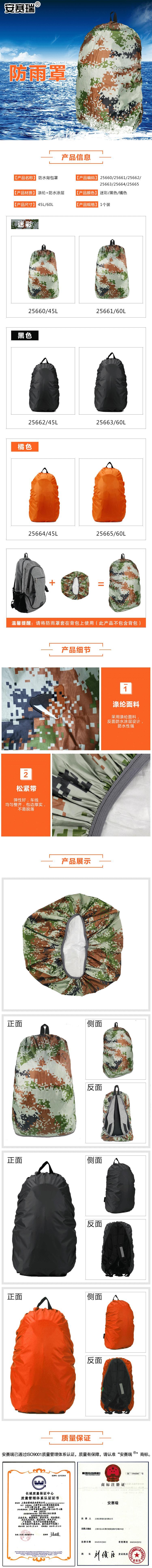 产品设计为50-60L容量适配,适合大多数户外登山、徒步旅行使用的背包,提供黑色、迷彩和橘色三种颜色选择,满足不同用户的审美与使用需求。