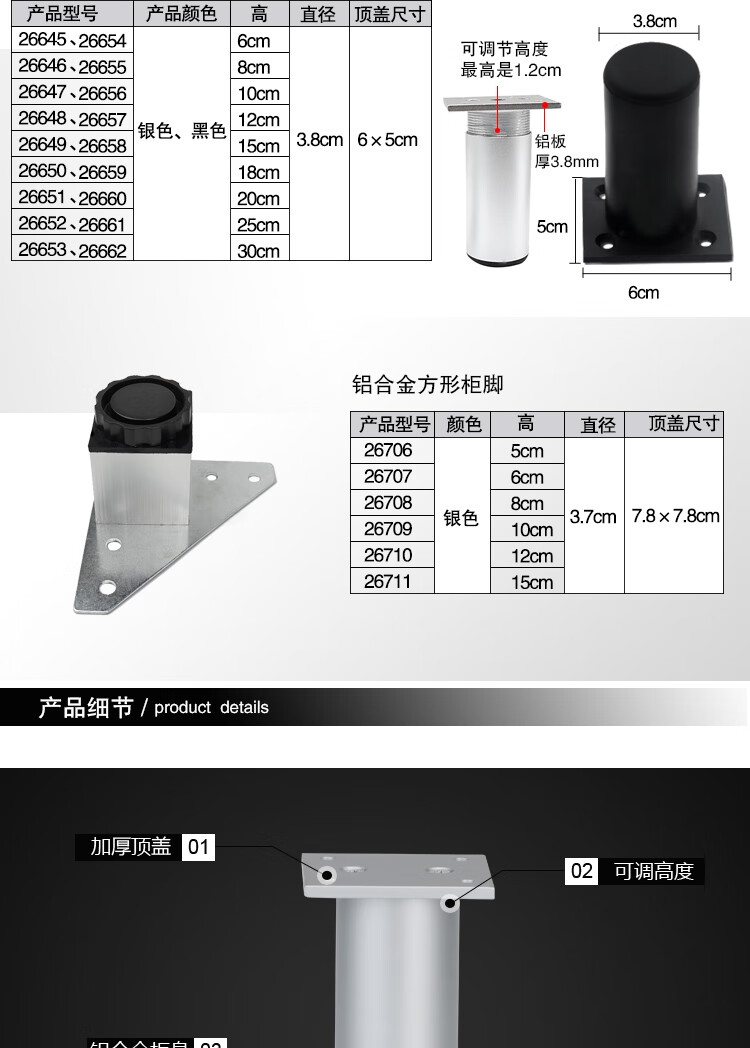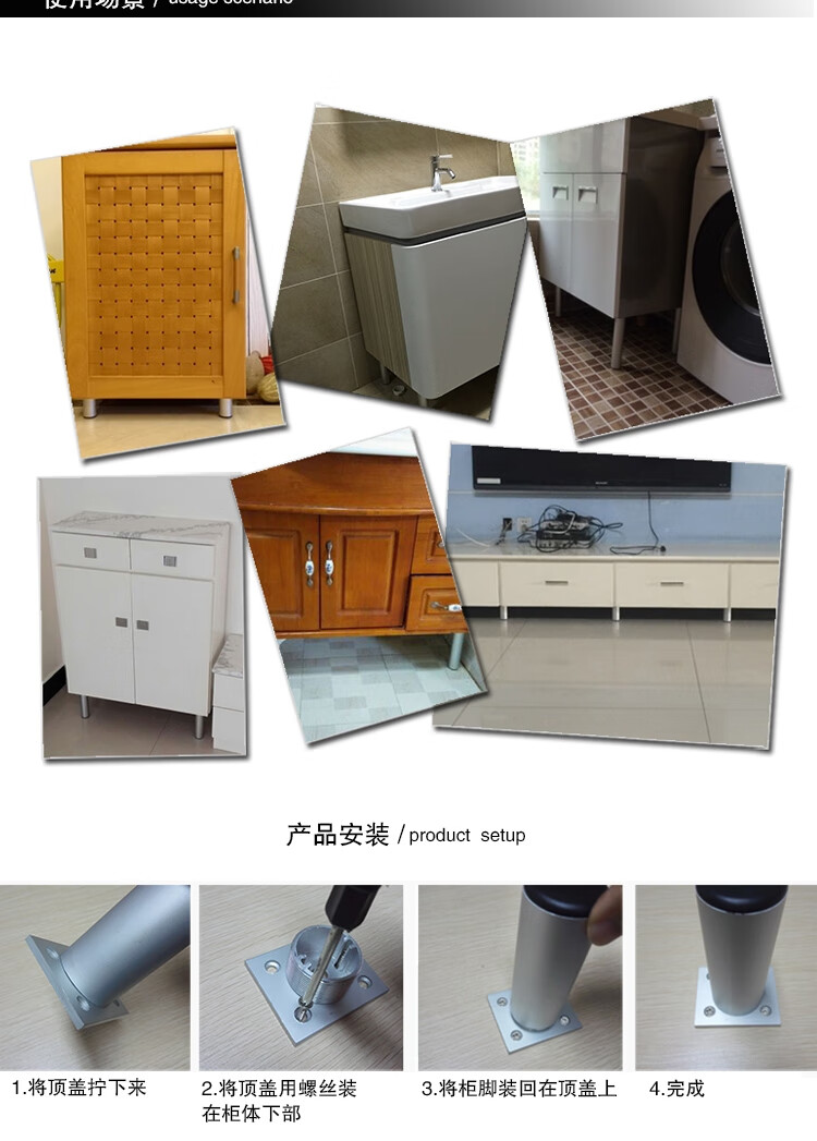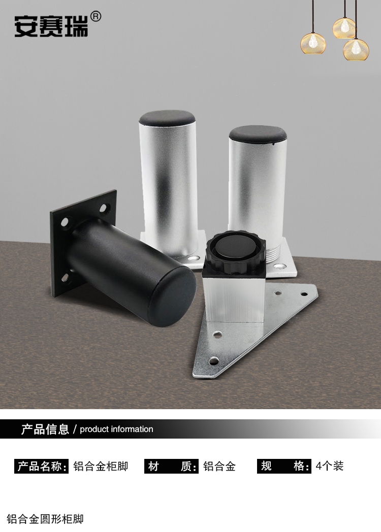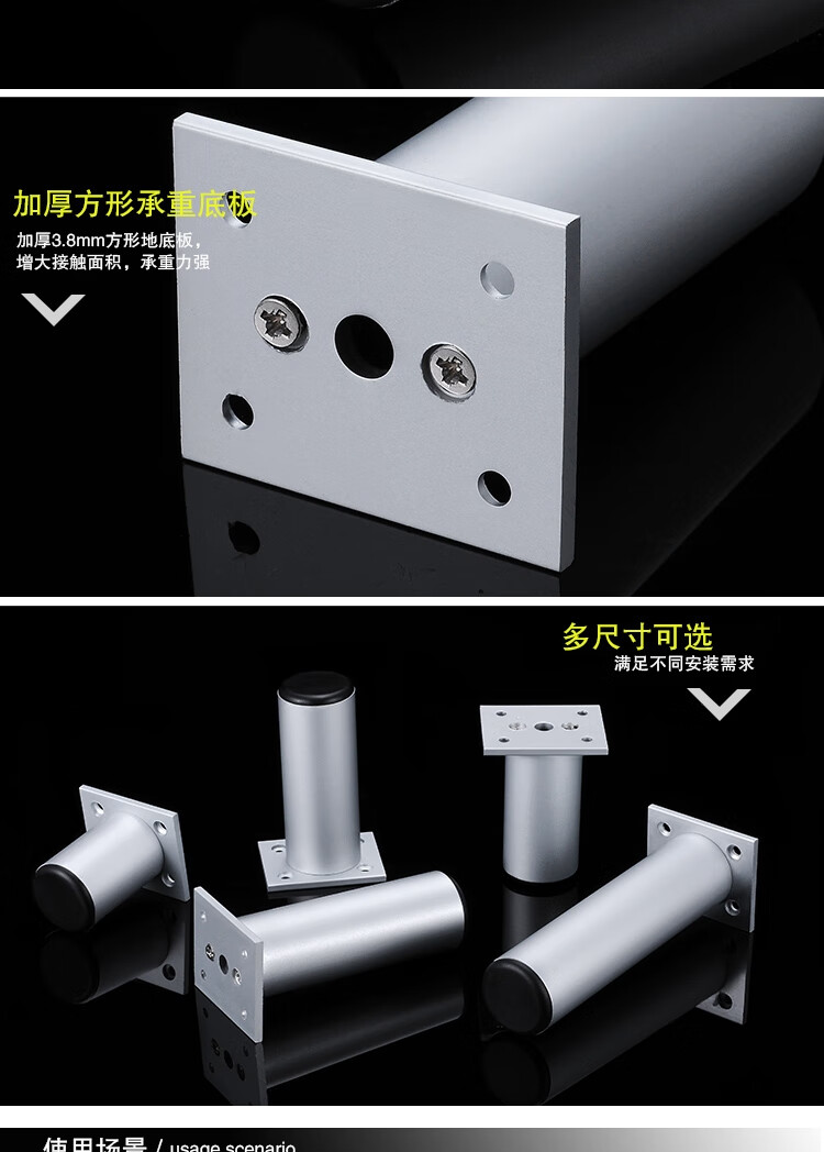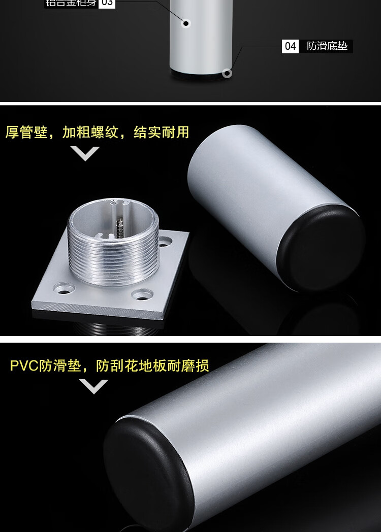 安赛瑞 铝合金方形柜脚(4个装)办公家具支撑腿桌子橱柜衣柜沙发增高脚垫柜腿 可调节脚垫 8cm 26708